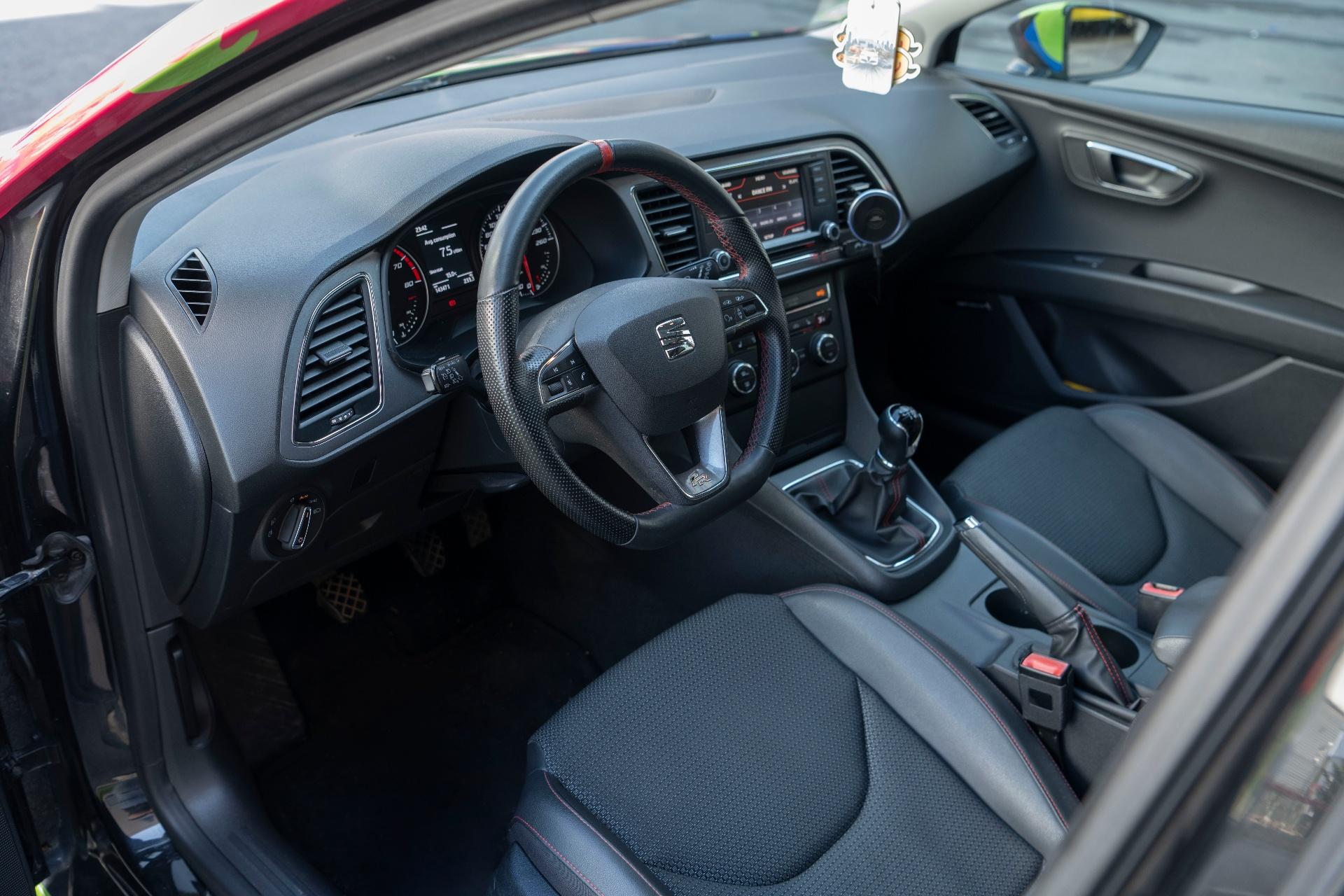 Seat Leon Mk3 1.8 TSI 260 CP ✔️ TVA inclus si nedeductibil ✔️Vă oferim transparență totală, posibilitatea de finanțare și toate avantajele achiziției prin Automotion. ✔️Posibilitate finantare ✔️Istoric complet si raport CarVertical ✔️ Import Germania – iunie 2021 ✔️ Un singur proprietar în România ✔️ Modificări documentate Specificații generale: Motorizare: 1.8 TSI Putere: 180 CP (260 CP după Stage 1) Cuplu: 388 Nm Norma de poluare: Euro 6 Emisii CO2: 137 g/km Culoare de bază: Negru (colantare integrală) Țara de origine: Germania Modificări & upgrade-uri: Stage 1 – DOP Motorsport (260 CP / 388 Nm) Colantare integrală – print dintr-o bucata - DCM Design Kit exterior complet Maxton Design (lip față, praguri, diffuser) Evacuare finală dublă Cupra 280 adaptată Tobă intermediară anulată – sunet sport, fără drone Arcuri Eibach Pro-Kit Distanțiere JR – 20 mm spate / 15 mm față Volan retapițat piele Nappa + o-ring central Centuri față roșii Dotări: Faruri și stopuri LED Trapa electrică Moduri de condus: Sport / Normal / Eco / Individual Pachet FR Sistem audio Seat Sound Scaune față piele + textil, încălzite Jante OEM 18” (vopsite profesional – TopWheels) Geamuri electrice față/spate Oglinzi electrice si incalzite ABS / ESP Computer de bord Închidere centralizată Întreținere & service: Revizii efectuate la 7.000 – 10.000 km Pompa de apă schimbată recent Ultima revizie: mijlocul lunii septembrie După Stage 1: bujii, bobine și PCV schimbate la DOP Motorsport Schimb ulei cutie de viteze efectuat în 2023 Revizie trapă efectuată vara 2022 (următoarea recomandată în 2026) Insonorizare portiere față cu material STP + burete (strat dublu unde a permis spațiul) Alte informații: Detailing complet realizat după colantare (polish special colant + ceramică – LevelUp Detailing) Mașina a participat la expo-uri auto (Rooftop, Subturat, Allatars etc.) Uzură normală de oraș (mici zgârieturi / urme minore specifice Bucureștiului) În talon: multicolor Se oferă evacuarea și arcurile originale