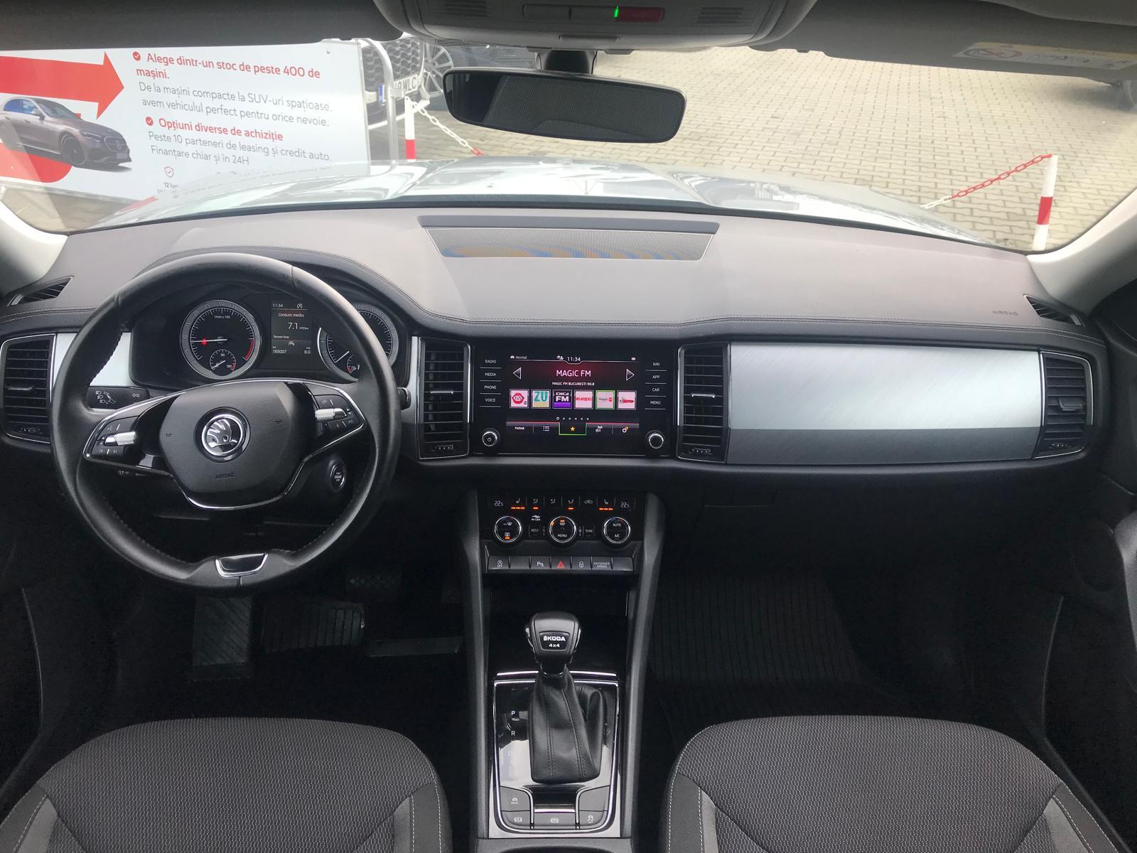 Skoda Kodiaq 2.0 DSG 4x4 150CP ✔️Automobil disponibil în stoc, cu istoric complet verificabil la reprezentanță și raport CarVertical. ✔️Vă oferim transparență totală, posibilitatea de finanțare și toate avantajele achiziției prin Automotion. ✔️TVA inclus si deductibil ✔️Posibilitate finantare ✔️Istoric complet si raport CarVertical ✔️Garantie completa 12 luni • Tractiune integrala 4x4 • Moduri condus : Sport/Sport+/Confort/Snow/Eco • Camera video marșarier • Faruri LED • Lumini ambientale de interior • ABS • Distronic • Incalzire scaune fata • Incalzire bancheta spate • Line assist ( mentine banda ) • Side assist ( unghiul mort ) • Sign assist ( recunoașterea semnelor de circulație ) • Front assist ( frânează singură ) • ESP • Sistem Multimedia • Sistem Navigatie / Android Auto / CarPlay • Servodirectie asistata • Volan sport reglabil si imbracat in piele • Lumini de zi LED • Airbag-uri fata (sofer + pasager), laterale fata si cortina • Dublu Climatronic fata • Geamuri electrice fata / spate • Oglinzi reglabile electric, incalzite si rabatabile • Jaluzele la geamurile spate • Senzori ploaie • Senzori lumini • Senzori parcare fata / spate • Senzori oglinda anti-orbire • Senzori presiune roti • Temporizator • Pilot automat • Computer de bord (MaxiDOT) • Proiectoare ceata • Jante aliaj R19 • Sistem de prindere Isofix **Automotion – siguranță, transparență, profesionalism. ** Contactează-ne acum pentru detalii sau programare test drive!